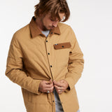 Confeccionada 100% en algodón, es liviana pero lo suficientemente abrigada gracias a su relleno ligero. El detalle de cotelé en el cuello y la solapa del bolsillo aporta un toque diferente, mientras que los broches metálicos le dan esa estilo más robusto y auténtico que tanto nos gusta.