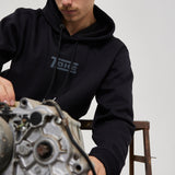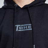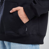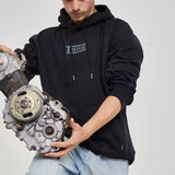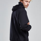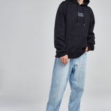 • Diseño: hoodie negro clásico con capucha ajustable, estampado y con cordones.