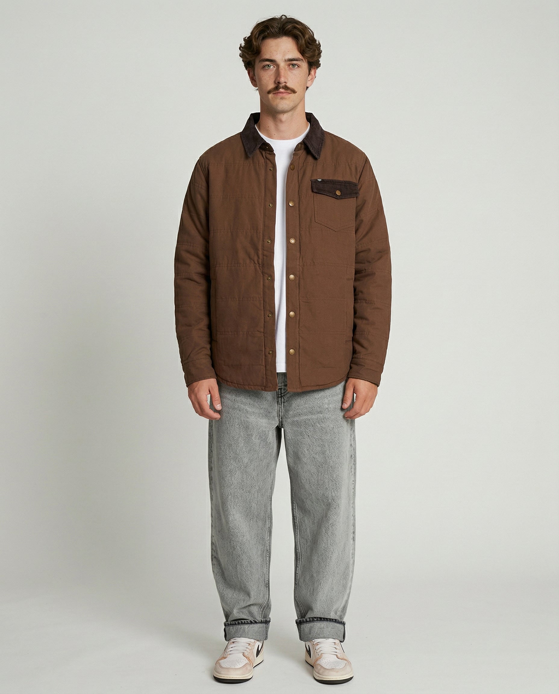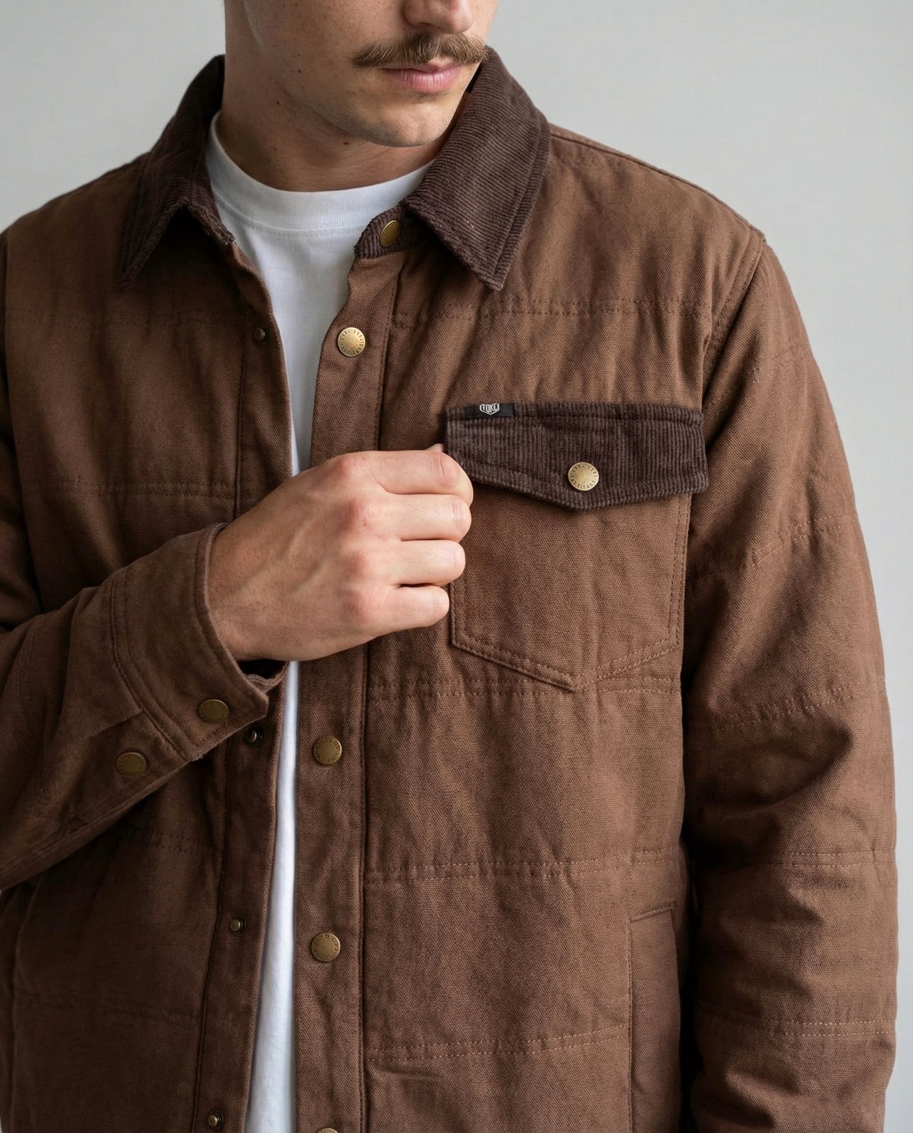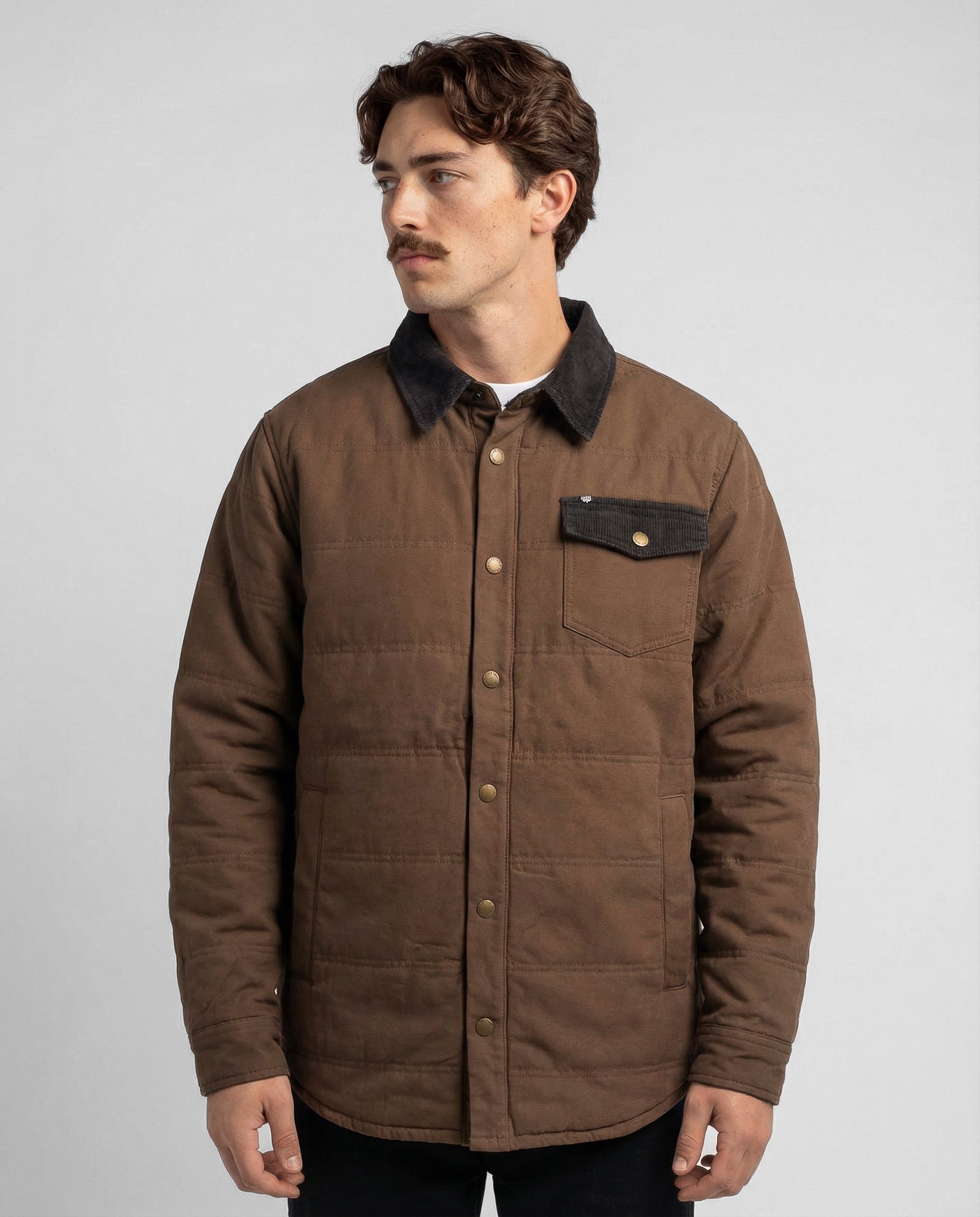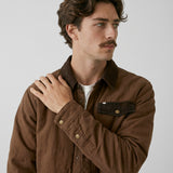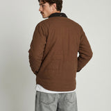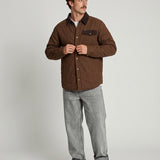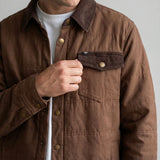 Inspirada en las camisas de trabajo tradicionales, está confeccionada 100% en algodón y cuenta con un relleno ligero que abriga sin limitar el movimiento. Sus detalles en cotelé en el cuello y la solapa del bolsillo, junto con los broches metálicos, le dan un aire clásico y auténtico que combina con todo.